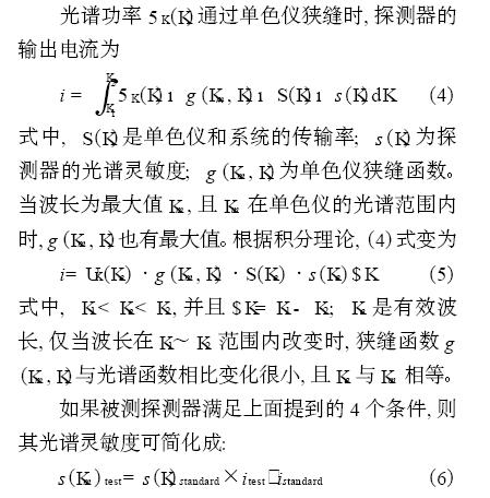 从另一方面讲, 使用腔探测器对选择性探测器( 如光电二极管v (K) ) 进行校准时, 由于杂散辐射的存在导致校准失败(但使用已校准的同类型v (K) 探测器对其进行校准除外)。同理可知, 单个单色仪的高带宽不会产生严重的误差, 且(6) 式仍适用。